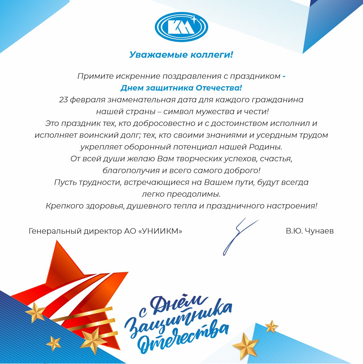 С Днем защитника Отечества! Поздравление от Генерального директора В.Ю Чунаева